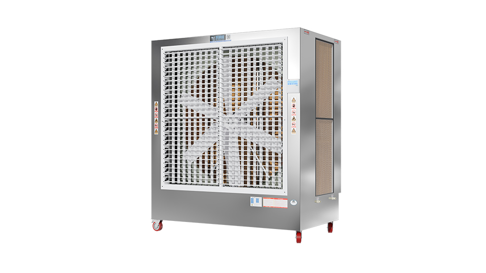 移动式水帘柜冷风机组,是降温系统一种新的结构形式,它融大面积湿帘与低转速大风 量负压风机为一体,蒸发效率高,降温效果好,覆盖面积大,出风柔和,是一款集降温、换 气、防尘、除味于一身的新款工业环保空调